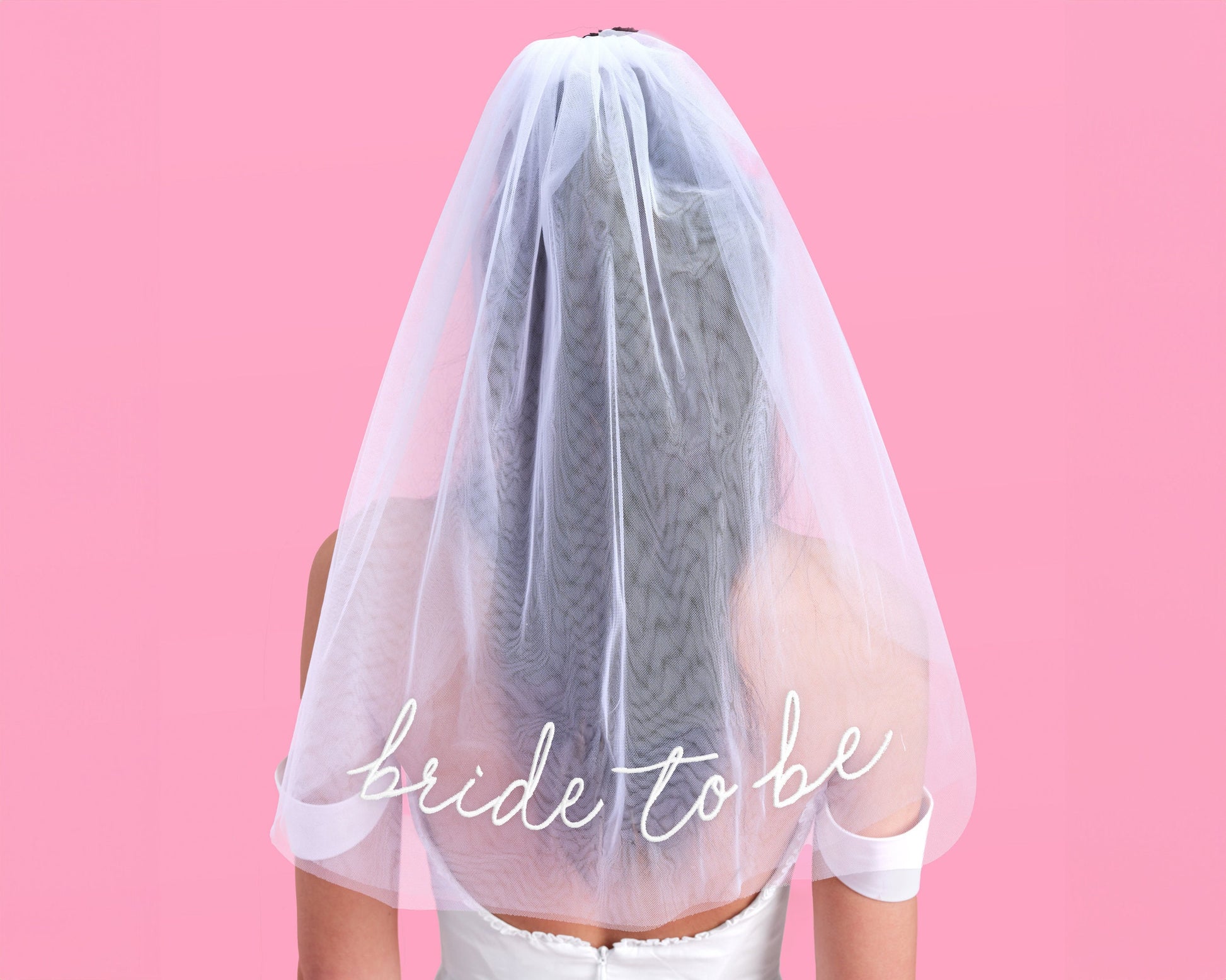 Sheer 'Bride To Be' Veil – Embroidered White Tulle for Bachelorette, Shower or Engagement